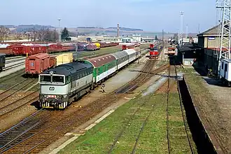 Krnov station in 2001 with a ČD Class 750 diesel locomotive