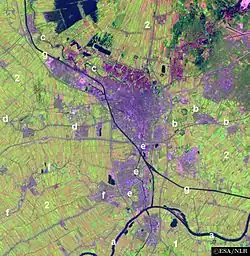 Originally, the city of Utrecht was built by the Romans at a ford near the place where the Kromme Rijn forks into rivers Vecht (north) and Leidse Rijn (west); the last stretch within the city walls, however, was channelised to form the Oudegracht canal. Rivers Leidse Rijn and Vecht extend from the city moat and are the continuation of the Kromme Rijn.