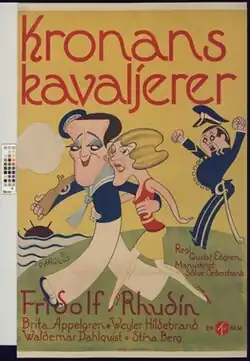 Cavaliers of the Crown (Swedish: Kronans kavaljerer) is a 1930 Swedish silent comedy film directed by Gustaf Edgren and starring Fridolf Rhudin, Brita Appelgren and Weyler Hildebrand.[1] It was shot at the Råsunda Studios in Stockholm. The film's sets were designed by the art director Vilhelm Bryde.
