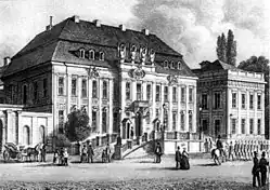 In 1732, Philipp Gerlach remodelled the building in baroque style with a protruding central bay and a carriage drive rising to the front entrance, to serve as a residence for the Crown Prince, the future King Frederick II.[2][4] He and his wife Elisabeth Christine stayed there only intermittently before his accession to the throne in 1740, after which he took up residence in part of the royal palace. He gave the Kronprinzenpalais to his brother Augustus William; after Augustus William's death in 1758, his widow continued to use it until 1780.