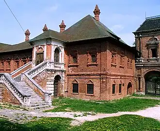 Krutitsy Metochion (Russian: Крути́цкое подворье), full name: Krutitsy Patriarchal Metochion (Russian: Крутицкое Патриаршее подворье) is an operating ecclesiastical estate of Russian Orthodox Church, located in Tagansky District of Moscow, Russia, 3 kilometers south-east from the Kremlin. The name Krutitsy (pl.), i.e. steep river banks, originally meant the hills immediately east from Yauza River. Krutitsy Metochion, established in the late 13th century, contains listed historical buildings erected in the late 17th century on the site of earlier 16th century foundations. After a brief period of prosperity in the 17th century, Krutitsy was shut down by imperial authorities in the 1780s, and served as a military warehouse for nearly two centuries. It was restored by Petr Baranovsky and gradually opened to the public after World War II; in 1991-1996, Krutitsy was returned to the Church and re-established as the personal metochion of Patriarch of Moscow and all Russia.