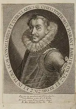 Kryštof Harant of Polžice and Bezdružice (Czech: Kryštof Harant z Polžic a Bezdružic, 1564 – 21 June 1621) was a nobleman, traveler, humanist, soldier, writer and composer from Bohemia. He joined the Protestant Bohemian Revolt in the Lands of the Bohemian Crown against the House of Habsburg that led to Thirty Years' War. Following the victory of Catholic forces in the Battle of White Mountain, Harant was executed in the mass Old Town Square execution by the Habsburgs.