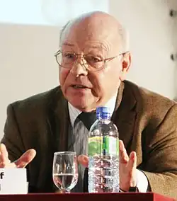 ![]() Pomian speaking at a conference organised by the Foundation for Political Innovation, 2009 | |