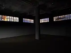 In 2009, the Institute of Contemporary Art in Boston exhibited …Out of Here: The Veterans Project. The multimedia installation, which ran from November 4, 2009, to March 28, 2010, filled a dark and empty museum gallery with recorded voices and explosions, along with flashes of light, simulating the experience of a mortar attack in Iraq. On three walls of the gallery, projectors cast two horizontal rows of windows, creating the illusion that viewers were inside a darkened warehouse. The eight-minute audio track started with the bustle of traffic and citizens in an Iraqi city, brought in children's laughter, and subtly overlapped an excerpt from an Al Jazeera broadcast of President Obama speaking about the need to endure in Iraq. Listeners also noted an Islamic call to prayer, forebodingly drowned out by the approach of a helicopter. Without much warning, soldiers began yelling and shooting. When the gunfire ceased, a mother was heard wailing, and the episode ended in ominous silence (voices recorded for Out of Here belonged to a mixture of Iraqi-Americans, United States soldiers, and actors).[25]