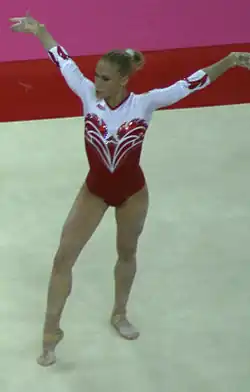 Ksenia Dmitrievna Afanasyeva (Russian: Ксения Дмитриевна Афанасьева; born 13 September 1991) is a retired Russian artistic gymnast who competed at the 2008 and 2012 Summer Olympics. She is the 2011 world champion on floor exercise, the 2013 and 2015 European floor champion, and the 2013 Universiade vault and floor champion. Widely regarded as one of the most original and artistic gymnasts of all time, she retired from elite gymnastics in July 2016 due to kidney disease, a month away from the 2016 Summer Olympics, for which she was the Russian team's first alternate.