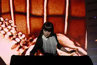 In 2010, she collaborated with Japanese female singer-songwriter Fuyumi Abe, featuring in the music video of the single "Sora Ni Mau" performing sand art.[55] In 2011, Simonova returned to television competition in another form, performing on stage at the Eurovision Song Contest 2011, during the performance of a Ukrainian entry by Mika Newton.[56]