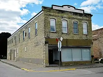 The Kucheman Building is a historic commercial building located in Bellevue, Iowa, United States. It is one of over 217 limestone structures in Jackson County from the mid-19th century, of which 20 are commercial buildings. The two-story structure was built in 1868 to house Kucheman & Son, a dry goods and clothing store. The second floor has housed an Opera Hall and City Hall. An addition was built onto the rear of the building sometime between 1902 and 1914. The building features four bays on its main facade, which is capped by a stone cornice with arched metal pediment. The stone blocks used in its construction vary somewhat in shape and size, and they were laid in courses. It also features dressed stone window sills and lintels. What differentiates this building from the others is its segmental arched windows.[2] The second floor windows on the front have simple stone hoodmolds. The building was listed on the National Register of Historic Places in 1991.[1]