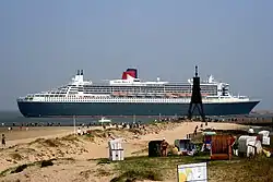 A Ro-Ro vessel MV Kugelbake was built in 2009 for container traffic on the Elbe, registered at Cuxhaven. It has crew of 6, a displacement of 3900 metric tons, is 79.3 m long and 18.6 m wide, and is equipped with a 1900 kW power plant.[8]