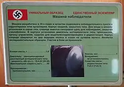 Only one example of the Kugelpanzer still exists today. It is on display in the collection of German armored vehicles at the Kubinka Tank Museum in Moscow where it is described simply as "Exhibit No. 37". It is speculated that this vehicle was captured by the Red Army in Manchuria. There is no record of it ever having been used in combat.[1][2] However, another report states that it was captured at the Kummersdorf proving grounds along with the infamous Maus super-heavy tank.[3] The vehicle was modified after its capture, repainted and its drive removed. In 2000, the original paintwork was restored.