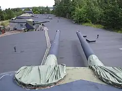 The guns were part of the coastal defense of Finland, but they were only fired twice during the Second World War, once during an exercise, and once when the Soviets were retreating from Hanko in the autumn of 1941.[1]