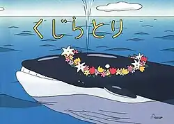 Kujiratori (くじらとり; lit. 'Whale Hunt') is a 2001 Japanese animated short film written and directed by Hayao Miyazaki, shown only in the Ghibli Museum in Mitaka, Japan. The film has a running time of 16 minutes.[1] It is drawn in a different, simpler style compared to other Studio Ghibli films and uses bright pastel colors.