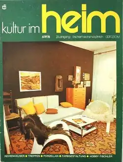 Kultur im Heim was started in 1956.[1][2] It was first appeared as a supplement to an interior design magazine Möbel und Wohnraum, but then became an independent publication.[3] Its foundation was an indicator of the change in the East Germany's cultural policy.[4] Because in the early days of the state housing architecture and city planning were emphasized as the preferred sites of socialist cultural identity.[4] However, from the mid-1950s its cultural policy became focused on commodities and domestic spaces.[4]