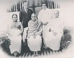 Narayana Guru's influence led Asan to spiritual pursuits and he spent some time at a local temple, in prayers and teaching Sanskrit.[1] Soon, he joined Guru at his Aruvippuram hermitage where he was known as Chinnaswami ("young ascetic"). In 1895, he moved to Bangalore and studied for law, staying with Padmanabhan Palpu. He stayed there only until 1898 as Palpu went to England and a plague epidemic spread over Bangalore and Asan spent the next few months in Madras before proceeding to Calcutta to continue his Sanskrit studies.[2] At Calcutta, he studied at Tarka sastra at the Central Hindu College, studying English simultaneously and also got involved with the Indian Renaissance, but his stay was again cut short due to plague epidemic.[3][4] He returned to Aruvippuram in 1900.[2]