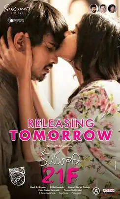 Kumari 21F is a 2015 Indian Telugu-language romantic drama film written by Sukumar and directed by Palnati Surya Pratap. Produced by Bandreddi Vijay Prasad, the film stars Raj Tarun and Hebah Patel. Kumari 21F focuses on a romantic relationship between Siddhu, a chef and Kumari, a struggling model.[5]