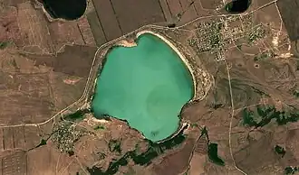 Among the lakes in its vicinity, Karaungir lies 11 kilometers (6.8 mi) to the west, Zhamantuz 22 kilometers (14 mi) to the NNW, Urymkay 12 kilometers (7.5 mi) to the SSE, Balykty 15 kilometers (9.3 mi) to the ESE, and Shchuchye 22 kilometers (14 mi) to the northeast.[2][3]