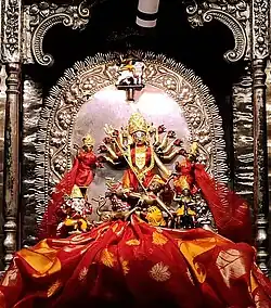 Dhakeswari Mata Temple is a Hindu temple located in Kumortuli, near Sovabazar, Kolkata. It is situated on the eastern bank of the Hooghly River near Kumartolly. The presiding deity of the temple is Devi Durga, which was taken to Kolkata in 1947 from Dhakeswari Temple in Dhaka, Bangladesh.[8][9]