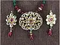 Kundan, meaning pure gold,[1] is a traditional form of Indian gemstone jewellery involving a gem set with a gold foil between the stones and its mount, usually for elaborate necklaces and other jewellery.[2][3]