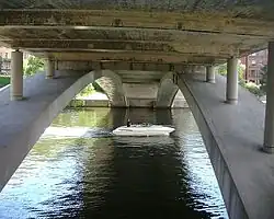 The swing bridge was replaced in 1944 by two one-way concrete arch bridges, each 14 metres wide with a maximum span of 68 metres.[1]