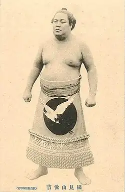 Kunimiyama Etsukichi (Japanese: 國見山 悦吉; born Etsukichi Matsushita (松下 悦吉, Matsushita Etsukichi), March 28, 1876 – September 25, 1924) was a Japanese professional sumo wrestler from Tosa District, Kōchi (now Kōchi, Kōchi Prefecture).[1] He reached the rank of ōzeki in May 1905 and was the first wrestler to be promoted at that rank since Yahatayama, 14 years earlier. He was also the last ōzeki from his prefecture until the promotion of Tamanishiki in May 1930, 25 years later.[2]