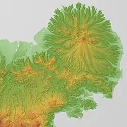 The Kunisaki Peninsula (国東半島, Kunisaki Hantō) is a peninsula in northern Ōita Prefecture, Kyushu, Japan that juts out into the Seto Inland Sea.[1] The peninsula is almost circular. There is Mount Futago (両子山, Futago-san) in the central part of the peninsula.[2]