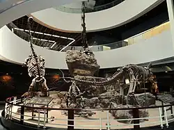 A trio of dino-skeletons dominate the prehistoric exhibit on the first floor. These plant-eaters stomped around Yunnan about 200 million years ago. Though the biggest of the three is a cast, the smaller ones are genuine bones, exhumed from Yunnan's Lufeng Basin in the 1980s. Though the prehistoric exhibit is the most impressive, there are plenty of animals to be seen on all of the museum's three floors. An array of taxidermied mammals and birds lines the display cases of the second floor. Up another flight of stairs reveals a "Rainforest Adventure," which walks visitors along a path through synthetic trees, bird calls and a darkened cave. There are rigid fish and snakes entombed in formaldehyde jars.