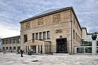 The old museum part was drawn-up by architects Karl Moser and Robert Curjel and opened in 1910. Particularly notable are the several preserved Moser interiors in the original section of the museum, decorated in masterful Neo-Grec version of Secession style. The bas-reliefs on the facade are by Moser's longtime collaborator Oskar Kiefer. The original museum building was extended in 1925, 1958 and 1976.[2]