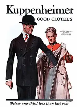 - Kuppenheimer is known for commissioning American illustrator J.C. Leyendecker to create hundreds of paintings to be used in their advertisements.[13]