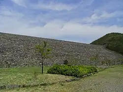 The Kuriyama Dam is a rock-fill embankment dam on a tributary of the Togawa River located 6.4 km (4 mi) northwest of Nikkō in Tochigi Prefecture, Japan. It was constructed between 1981 and 1985. Its reservoir serves as the upper reservoir for the 1,050 MW Imaichi Pumped Storage Power Station, while the Imaichi Dam forms the lower. The dam is 97.5 m (320 ft) tall and withholds a reservoir with a storage capacity of 6,890,000 m3 (5,586 acre⋅ft). Of that capacity, 6,200,000 m3 (5,026 acre⋅ft) is used to produce electricity at the power plant. It is owned and operated by TEPCO.[1][2]