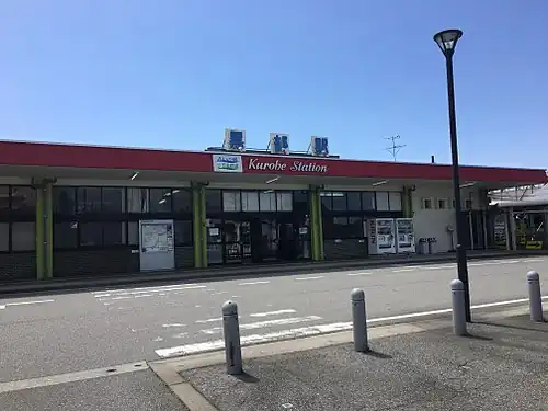 Kurobe Station (黒部駅, Kurobe-eki) is a railway station on the Ainokaze Toyama Railway Line in the city of Kurobe, Toyama, Japan, operated by the third-sector railway operator Ainokaze Toyama Railway. It is also a freight terminal for the Japan Freight Railway Company.