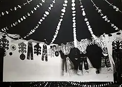 A notable development for the material culture of Kurpie Białe, as well as an opportunity to showcase their crafts to a broader audience, came with the establishment of a women's cooperative in Gładczyn in 1936. The cooperative was organized by Wanda Modzelewska. In 1938, the Kurpie Cooperative of Folk Industry was officially registered.[102] The supervisory board included Wanda Modzelewska, Zofia and Jan Rostafiński, parson Konstanty Lewandowski, and embroiderer Marianna Pogłód.[102][103] The cooperative included women from Puszcza Biała who specialized in embroidery, weaving, paper cutting, and egg decoration.[102]