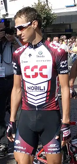 Kurt Asle Arvesen (born 9 February 1975) is a Norwegian former professional road bicycle racer, who competed as a professional between 1998 and 2011.[2] Arvesen is from Eresfjord, Nesset. He won the Norwegian National Road Race Championships five times,[3] as well as stages in each of the three Grand Tours.