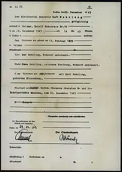 | Died | 22 December 1943 (aged 44) Dachau Concentration Camp, Germany |