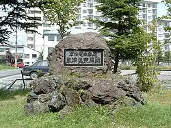 Located approximately 400 m (0.25 mi) south of the current Kusatsu Onsen Bus Terminal, the original Kusatsu Onsen Station (草津温泉駅, Kusatsu Onsen-eki) was a train station on the Kusakaru Electric Railway Line that operated from 1926 through 1962. The site of the former station has since been turned into a park, with a monument dedicated to the station.[5]