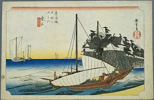 ![]() Hiroshige's print of Kuwana-juku, part of the Hōeidō edition The Fifty-three Stations of the Tōkaidō series | |||||