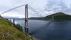 The Kvalsund Bridge (Kvalsundbrua) is a suspension bridge that crosses the Kvalsundet strait from the mainland to the island of Kvaløya.