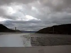 Kvalsundet is a strait in Hammerfest Municipality in Finnmark county, Norway. The strait separates the island of Kvaløya from the mainland.[1] The strait is crossed by Kvalsund Bridge, which connects Kvaløya to the mainland and is the world's northernmost suspension bridge.[2] Norway's first power station based on tidal currents is located in the strait.[3]