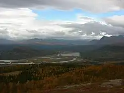 Kvikkjokk (Swedish pronunciation: [ˈkvɪ̌kːjɔk])[1] (Lule Sámi: Huhttán)[2] is a small village situated in Jokkmokk Municipality, Norrbotten County, Sweden. It is located 120 km northwest of Jokkmokk.[3] Several hiking trails start in Kvikkjokk. Kungsleden passes through the village and it is a popular starting point for hikers going into Sarek National Park.