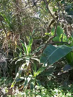 KwaZulu-Natal Dune Forest is a subtropicalforest type that was once found almost continuously along the coastal dunes of KwaZulu-Natal, South Africa. This vegetation type develops in sheltered areas behind the littoral zone, where with some protection from the salt wind it may develop with canopies as tall as 30 m.[1][2] It still exists in protected areas, but much has been degraded by human activity. Coastal dune forest covers approximately 1% of the land area of KwaZulu-Natal, and is a habitat type seriously threatened from human population pressure and development, particularly titanium mining.[3][4]