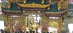 The temple's main worship is Cundi, a manifestation of Guanyin. It also worship Damo and Hua Tuo. A statue of Tathagata Buddha is also placed behind Kuan Yin. On top of the altar there is also the Four Heavenly Kings. [2]