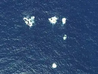 Kyūroku-jima was charted in 1786 by merchants, though the area had been known as a fishing ground since the sixteenth century when a fisherman named Kyūroku crashed on the islands, giving them their name.[5] The islets were first observed by Europeans in 1855, when the crew of HMS Bittern spotted them covered in seals. The crew named the islets the Bittern Rocks, a name that stuck with Western sources at least until the beginning of the twentieth century.[6]