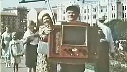 The first three television presenters on Ukrainian television were: in 1952, Novela Serpionova and Olga Danylenko, and in 1953, Olena Nikolaeva.[8] These broadcasts were largely viewed on KVN-49's, where by 1951, there were 661 in the city of Kyiv.[1]