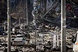 During the evening of 20 March 2022, Russian Armed Forces bombed Retroville, a shopping centre in the Ukrainian capital Kyiv.[6]