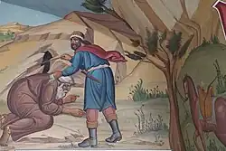 According to tradition written by Vasil Grigorovich-Barsky, the Ukrainian pilgrim who travelled to Kykkos Monastery in 1735,[4] a virtuous hermit called Esaias was living in a cave on the mountain of Kykkos. One day, the Byzantine governor of the island, doux Manuel Boutoumites, who was spending the summer at a village of Marathasa because of the heat of the season, went into the forest to hunt. Having lost his way in the forest he met Monk Esaias and asked him to show him the way. The hermit who was not interested in the things of this world would not answer his questions.
