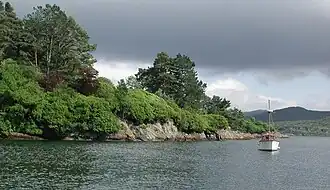 The Kyles of Bute (Scottish Gaelic: Na Caoil Bhòdach) form a narrow sea channel that separates the northern end of the Isle of Bute from the Cowal Peninsula in Argyll and Bute, on the Scottish mainland. The surrounding hillsides are roughly wooded, and overlooked by rocky tops and areas of moorland.[2]