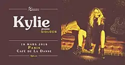 - ^ Minogue, Kylie (25 September 2018). "When is gold too golden? 🌟Never! We're bringing the full #GoldenTour experience to Europe! 💛 Link in bio for tickets". Instagram. Archived from the original on 24 December 2021. Retrieved 25 September 2018.