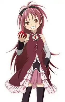 Kyoko Sakura (Japanese: 佐倉 杏子, Hepburn: Sakura Kyōko) is a fictional character from the 2011 anime series Puella Magi Madoka Magica. The daughter of a Protestant pastor, Kyoko is a magical girl from a poor family. Initially introduced as an aggressive and self-centered magical girl, Kyoko clashes with Sayaka Miki over their ideals of justice. As the story progresses, however, her views change and she sympathizes with Sayaka and tries to save her from despair. In Puella Magi Madoka Magica the Movie: Rebellion, Kyoko has a friendlier personality, and fights with her fellow magical girls against surreal monsters called Nightmares. Kyoko's past and her relationship with Mami Tomoe have been explored in the manga spin-off, Puella Magi Madoka Magica: The Different Story. She has appeared in several Puella Magi Madoka Magica-related media, including manga, novel adaptation and video games.