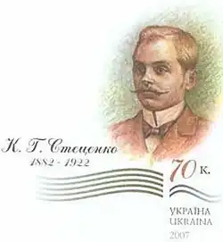 Kyrylo Hryhorovych Stetsenko (Ukrainian: Кирило Григорович Стеценко; May 12, 1882 – April 29, 1922) was a prolific Ukrainian composer, conductor, critic, and teacher. Late in his life he became a Ukrainian Orthodox Priest and head of the Music section of the Ministry of Education of the short-lived Ukrainian People's Republic.
