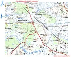 Ländchen Friesack is a small ridge, up to 77 metres above sea level (NN). It is situated in Brandenburg, northwest of Germany's capital city, Berlin and southwest of the town of Friesack. The Ländchen (German for "small land" or "little territory") extends for just under 5 kilometres in a north-south direction and separates the lowland and former marshes of the Rhinluch in the north from that of the Havelland Luch in the south. The upland is almost entirely forested. It is divided into the parishes of Friesack, Kleßen-Görne and Mühlenberge. Part of the Ländchen – around the lake of Görner See – is a nature reserve.[1]