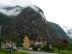 The village center is listed as a national "heritage village" and tourists come to see the old city center with its 161 wooden houses that date from 1700 to 1800.[4] Old Lærdalsøyri used to be a trading port between east and west in Norway. It is located near the head of Sognefjord, one of the longest fjords in Norway, which meant sea-going ships could carry goods deep inland before landing them at the village for the over-land journey into eastern Norway.