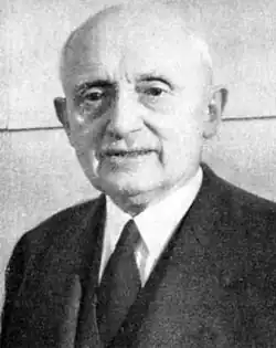 Léon Daum was one of the leaders of the Comité des forges, the French steelmaker's association.[4] Under the Vichy regime the Comité des forges was dissolved by decree on 9 November 1940.[5] It was replaced by the Comité d'organisation de la sidérurgie (CORSID – Organizing Committee for the Iron and Steel Industry).[6] Léon Daum was the only member of the Comité des forges to be appointed to CORSID.[7] On this committee he represented the Centre-Midi iron and steel industry.[1] He said, "When a government gathers together men who are called Petain, Weygand, Darlan, and these men tell us that we cannot do anything else but put down our weapons, you have to believe them."[8] He was on the committee from 1940 to 1945.[3]